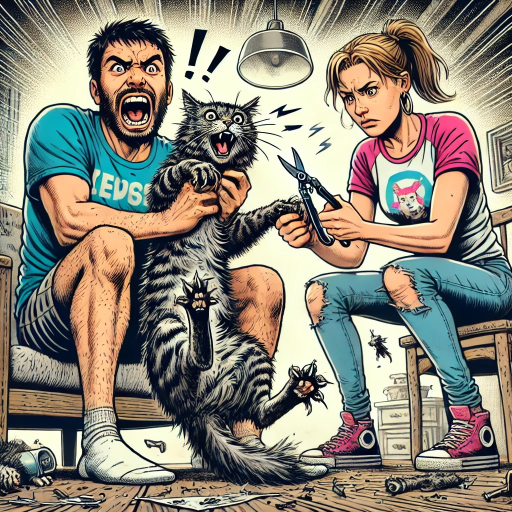 Okay, let’s face it: you’ve trimmed two, maybe three nails. That’s it. You’re done. The cat is hissing like it’s auditioning for a horror movie, and you’re covered in sweat, scratch marks, and a layer of humiliation. Let the beast go. It’s plotting your demise, but hey, at least you’re both still alive… for now.
